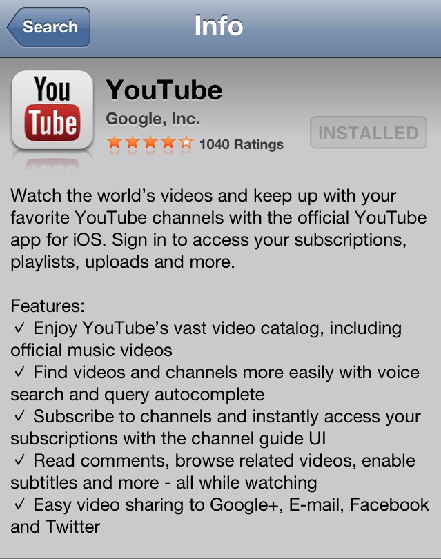 However, if you have checked their App store lately, there is a new YouTube app from Google that has magically appeared today. Currently it is out only for the iPhone and it has many features the old YouTube app from Apple did not have.