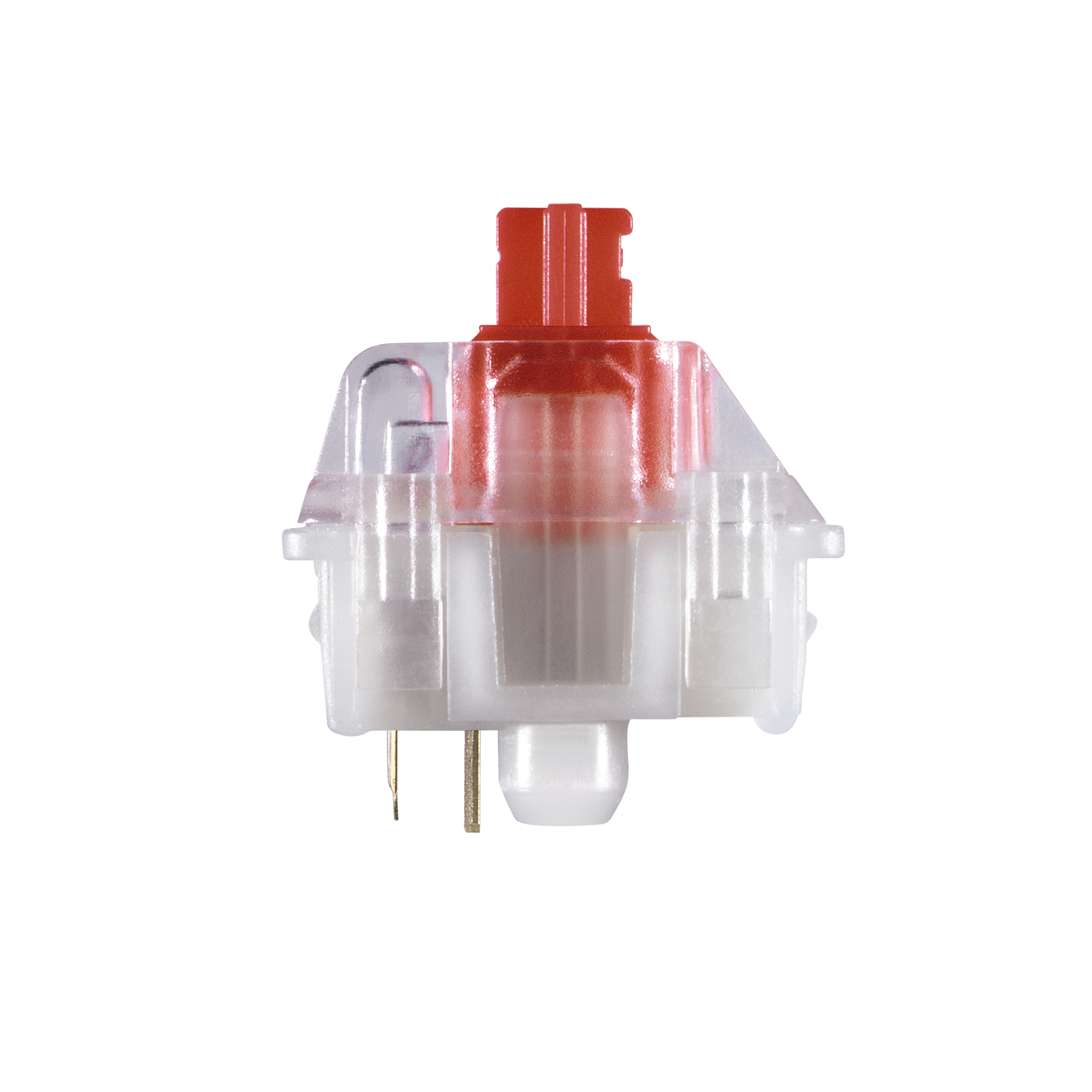 Red switch: Without pressure point, linear light actuation – switching function with a defined force of approx. 45 cN without contact feedback.