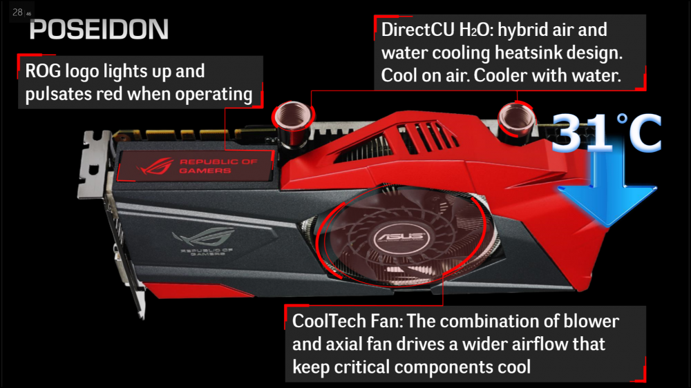 The Poseidon matches up with the R.O.G style and features ASUS’s new DirectCU H20 design that like the Formula VI can also be used in either an air cooled or liquid cooled system without too much modification at all. Currently ASUS has not confirmed which exact model of the NVIDIA 700 series model it will be, only that it most certainly will be one of the 700 series line cards. ASUS also claims that using the liquid cooled option of the Poseidon offers 31C cooler running speeds than those of using the air only solution. This is all great news for ASUS fans and for those who love the R.O.G theme and want to liquid cool it all as these new products make it easier than ever to implement a liquid cooled system. Thanks for reading Tech Of Tomorrow where we love to hear your thoughts on the article in the comments section below.