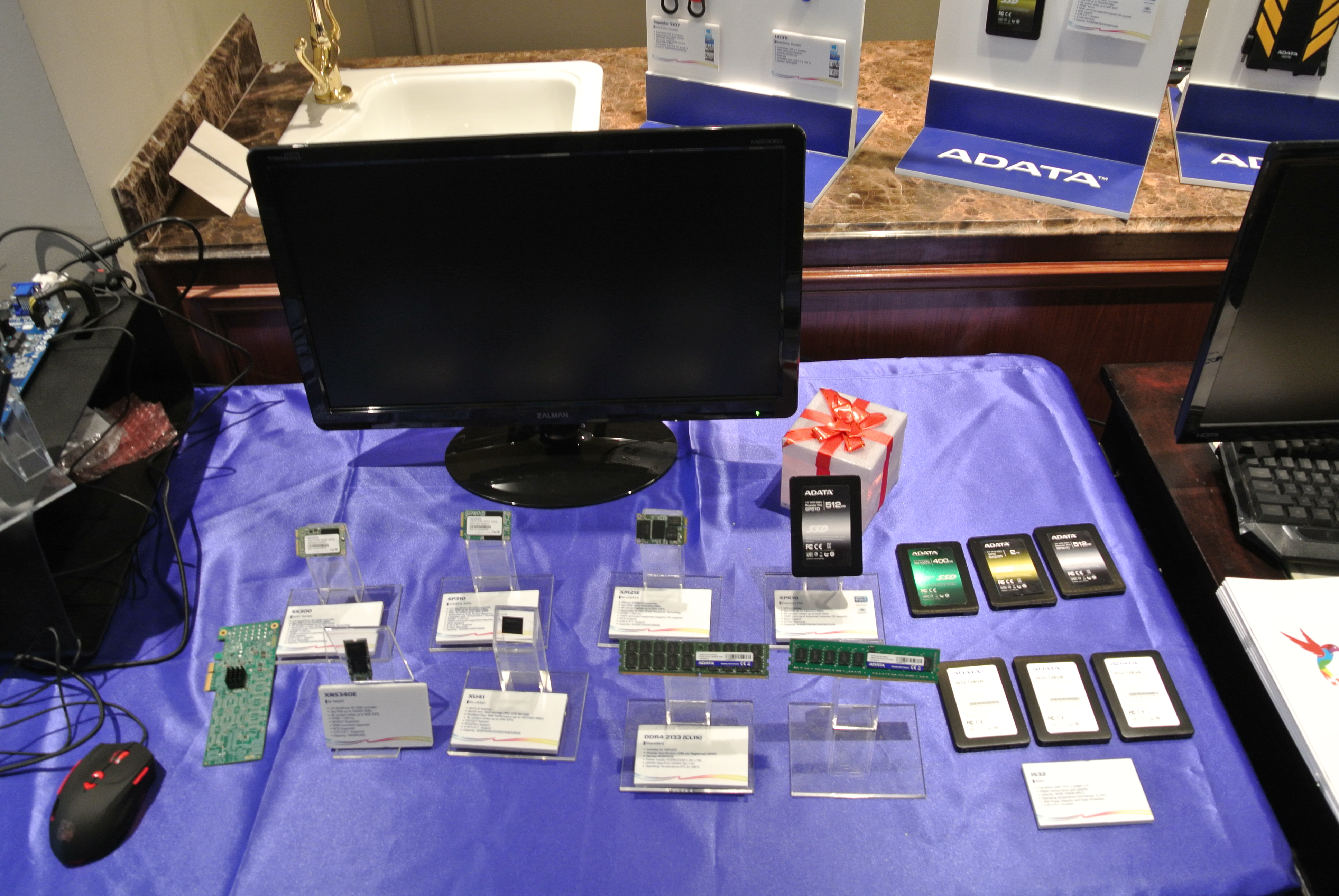 The Venetian Hotel is one of the largest and classiest you can get and our friends at ADATA have a few new products to show off at this years show. One thing that is very new and interesting is that ADATA is expanding into a lighting business as well as PC peripherals and we got to see a few pretty interesting items in their suite.