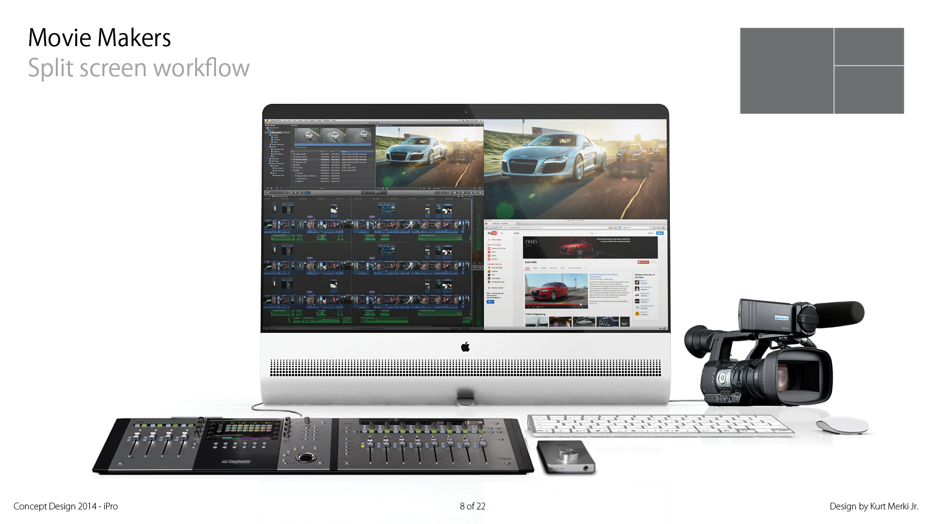 Veteran Apple fan, Kurt Merki Jr., imagines a totally new Apple computer combining the features of the iMac, Mac Pro, and Apple Cinema Display. Dubbed “iPro”, the concept desktop would be geared for professionals that propose “epic proportions in all ways.”